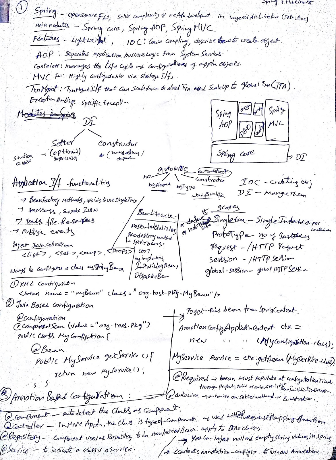 3.main modules of spring : Spring Core, Spring AOP, Spring MVC